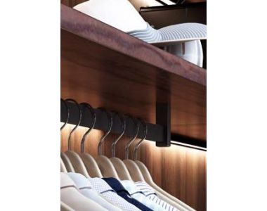 Штанга 80см LED имеет стильную форму, черного матового цвета, используется для освещения висящей на штанге одежды и внутреннего пространства шкафа или гардеробной. Штанга оснащена сенсором на движение, таким образом, свет будет включаться при открытии двери шкафа или гардеробной. Работает от акумулятора, зарядка USB